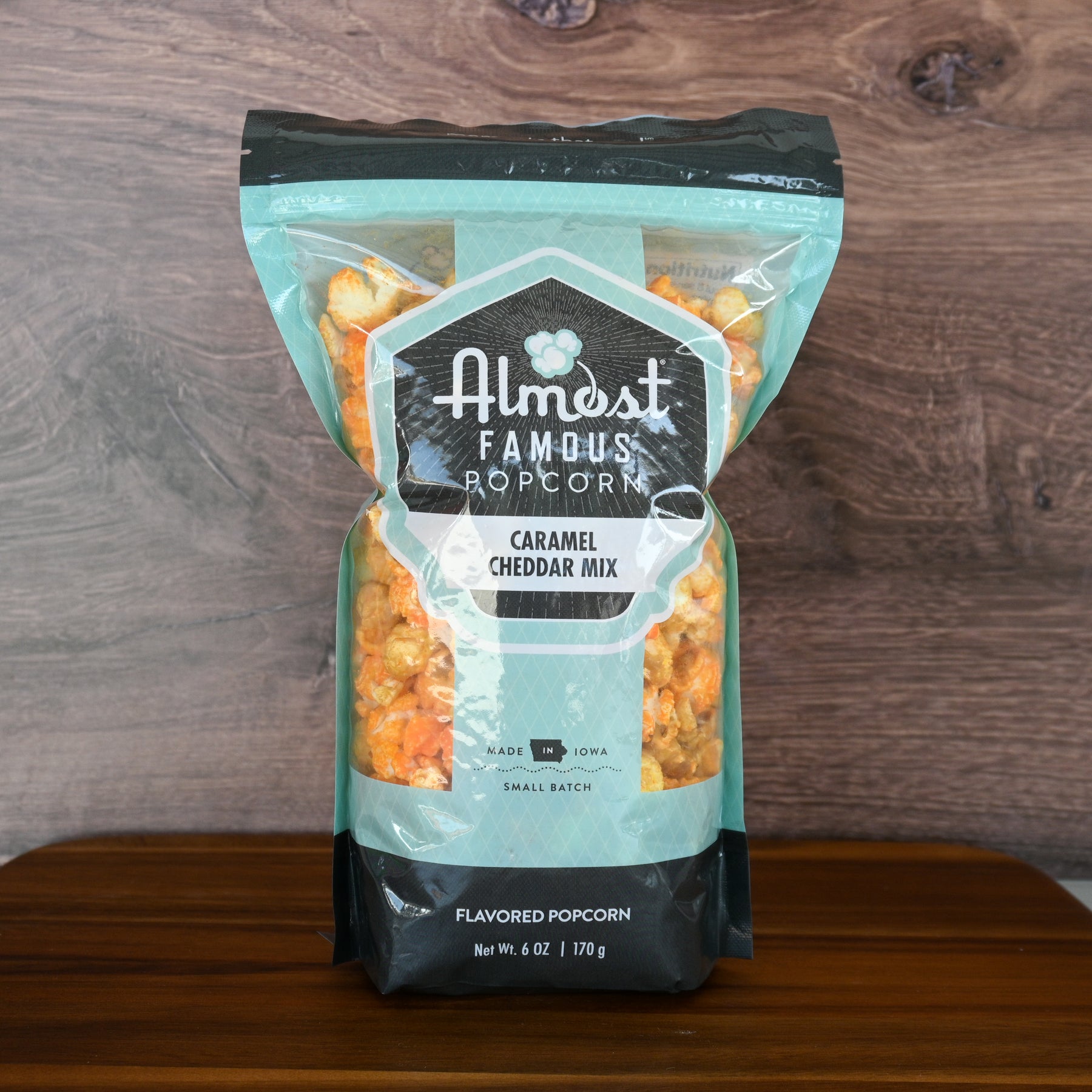 Made right here in Iowa! Perfect combination of caramel and cheddar popcorn. Comes in a approx 6 cup bag.